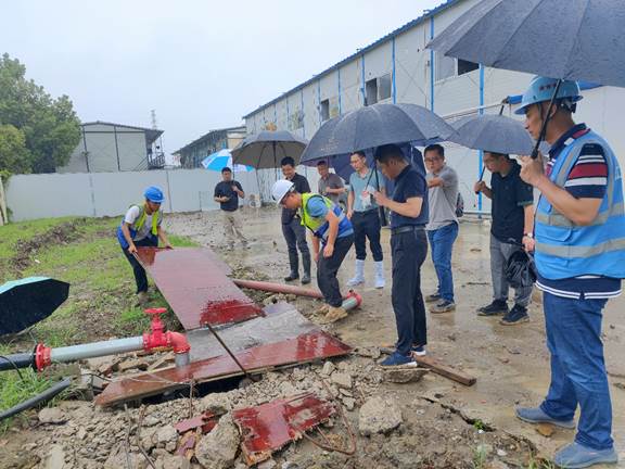 在陸涇路下穿,檢查組根據(jù)園區(qū)北部老舊下穿整治方案實(shí)地檢查了下穿周邊臨時(shí)地塊的排水設(shè)施,并提出要進(jìn)一步按照標(biāo)準(zhǔn)完善臨時(shí)地塊排水。