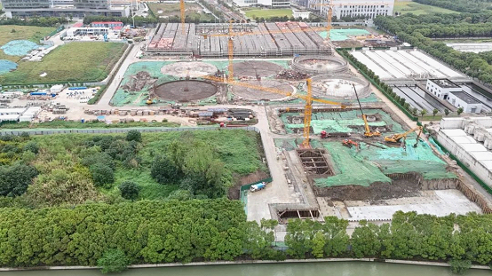 丹桂飄香秋意濃,金秋送爽迎豐收,正值工程建設施工的黃金期,蘇州工業園區第一污水處理廠三期擴建工程在經歷過戰梅雨、抗臺風后,現場一派繁忙景象。
