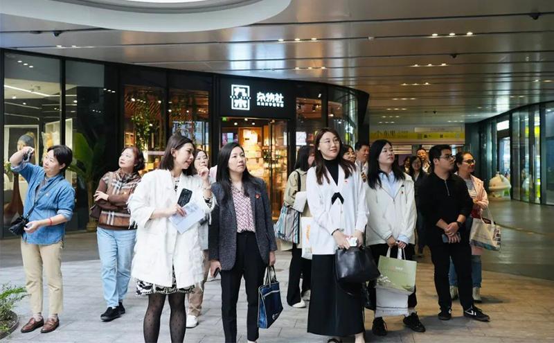 步入蘇河灣黨群服務中心,考察團一行一一參觀了中心內部的“初心啟航”“紅色蘇河”“潤心學苑”“青年驛家”“一網通辦”五大功能服務區域,在這里,黨員群眾不僅可以飽覽黃浦江與蘇州河交匯點風光,享用“一咖啡”,還能“浸潤式”感受蘇河灣歷史脈絡……有特色有亮點,給考察團留下了深刻的印象。此外,考察團一行還來到蘇河灣萬象天地,切身體悟“城市峽谷”的設計理念以及以城市綠地打破歷史、文化與商業界限的城市更新新風尚,觀摩學習該街區商貿資源活力,賦能樓宇招商。