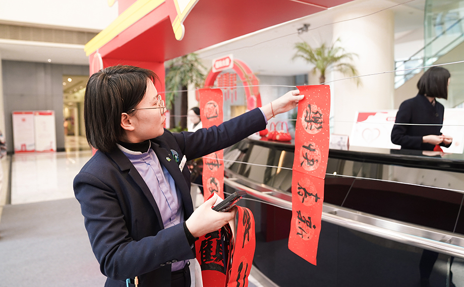 活動(dòng)現(xiàn)場(chǎng)一片歡樂祥和的節(jié)日氛圍,前來領(lǐng)取春聯(lián)及福字的員工絡(luò)繹不絕,大家手捧著新鮮出爐的春聯(lián),臉上洋溢著幸福的笑容,對(duì)書法家們的精湛技藝贊不絕口。一位在國(guó)際大廈工作的員工表示:“在超市選購春聯(lián)雖然方便,但現(xiàn)場(chǎng)手寫的春聯(lián)更有溫度、更有年味。我拿到了一副很合我心意的手寫春聯(lián),一定要把這份福氣帶回家。”短短兩個(gè)小時(shí)內(nèi),現(xiàn)場(chǎng)就送出了約500副春聯(lián)和500個(gè)福字,將滿滿的福氣傳遞到每個(gè)人手中。