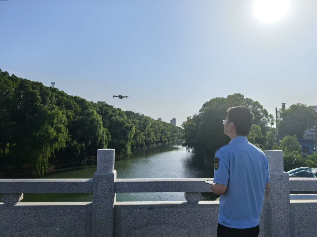 一架銀灰色無人機騰空而起,四枚螺旋槳高速轉動,以靈活的“空中視角”俯瞰波光粼粼的河面,這讓巡河工作變得更加精準高效。
