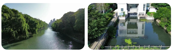 根據此前園區污防攻堅辦發布的水環境質量通報,轄區某河道水質有所惡化,商務區應環大隊環境執法人員立即行動,運用無人機對該河道及沿岸開展環境巡查。