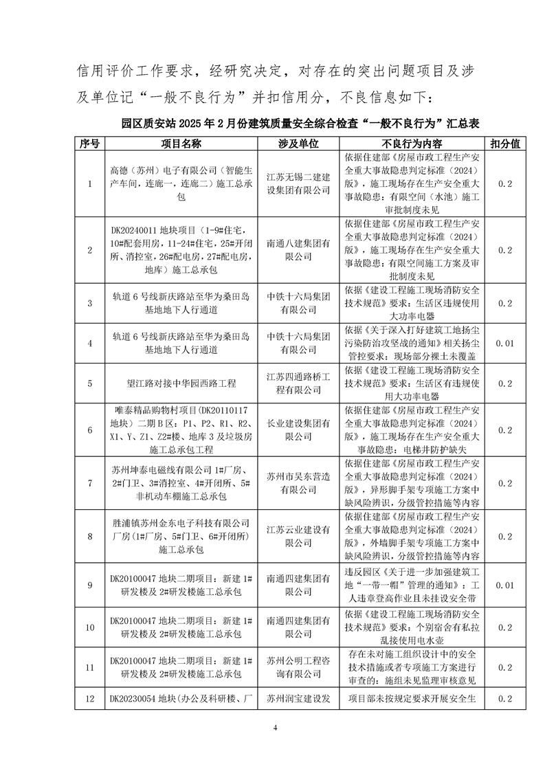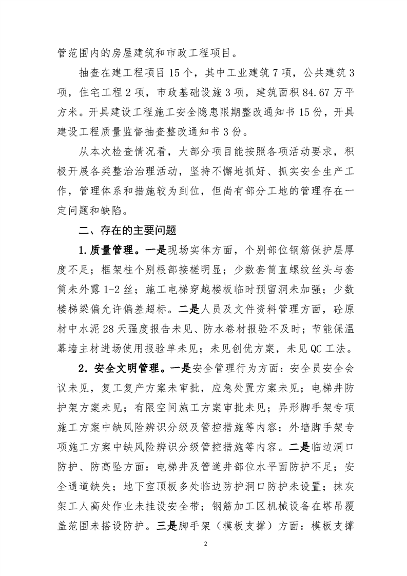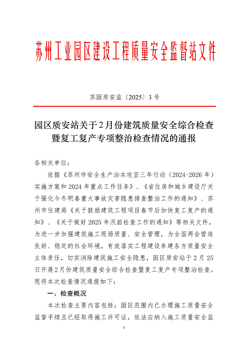 園區質安站關于2月份建筑質量安全綜合檢查暨復工復產專項整治檢查情況的通報