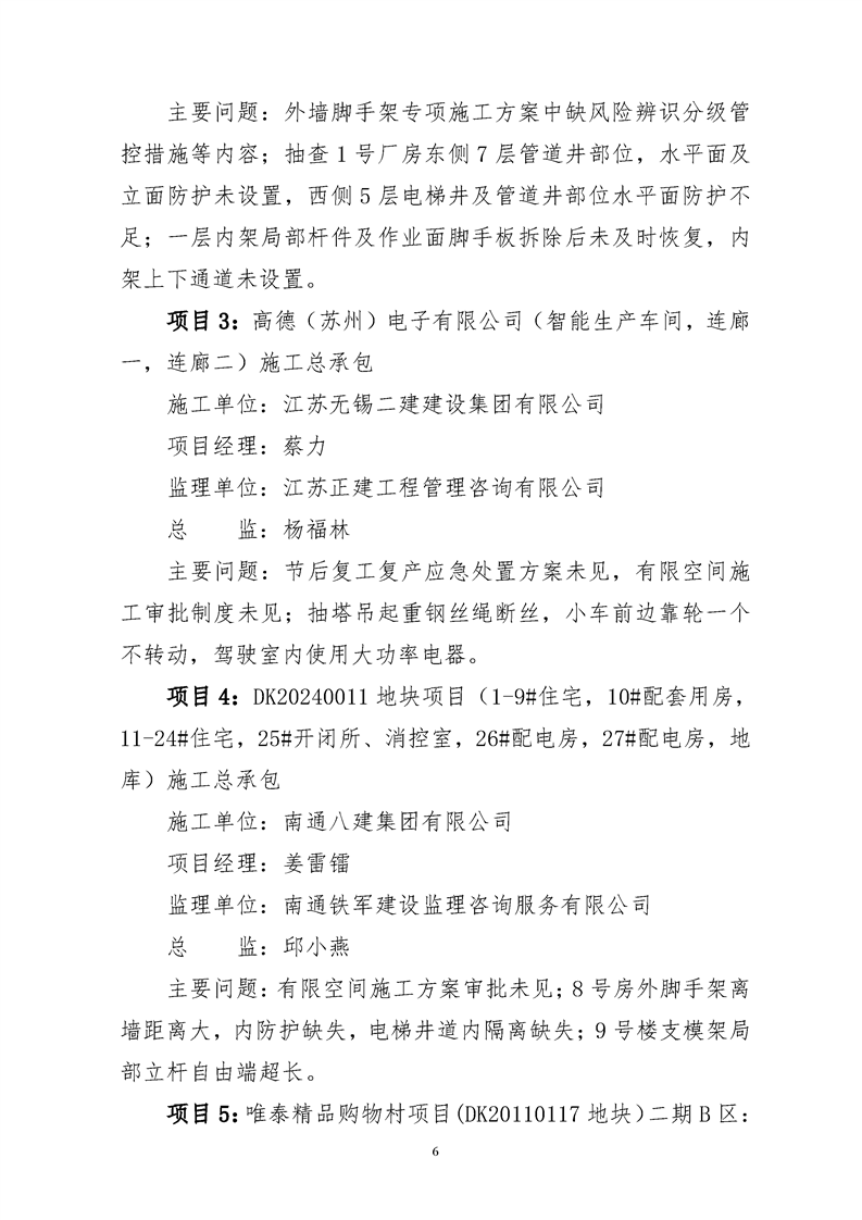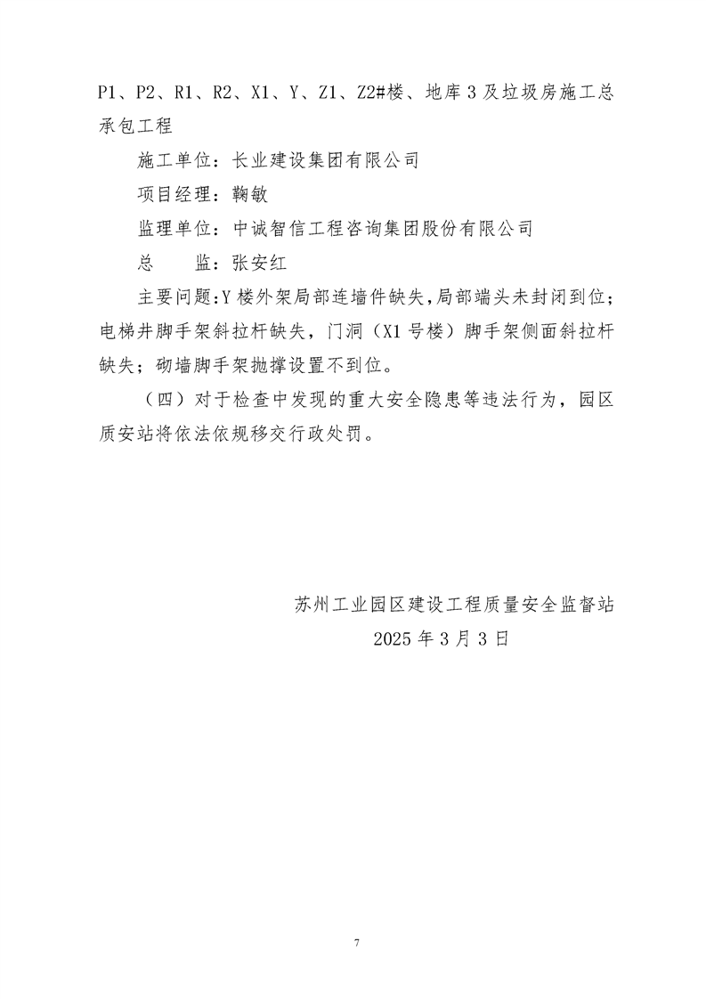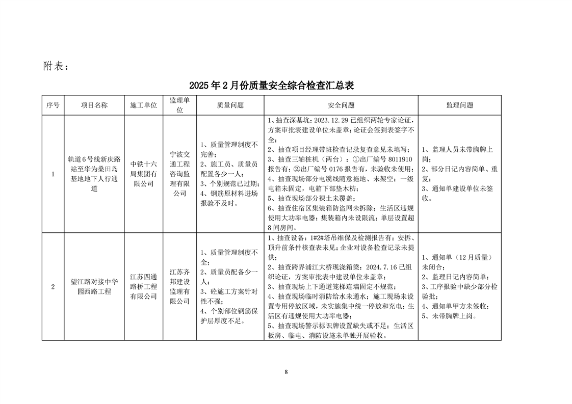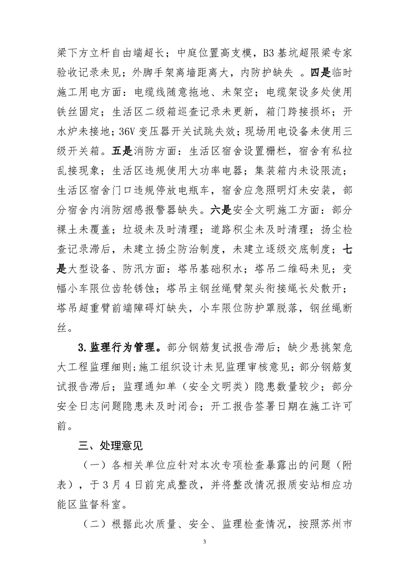 園區質安站關于2月份建筑質量安全綜合檢查暨復工復產專項整治檢查情況的通報