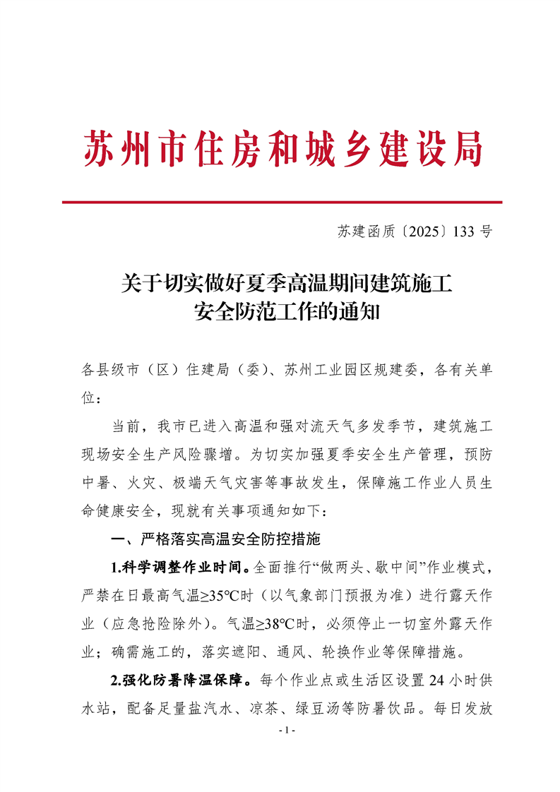 關(guān)于切實(shí)做好夏季高溫期間建筑施工安全防范工作的通知