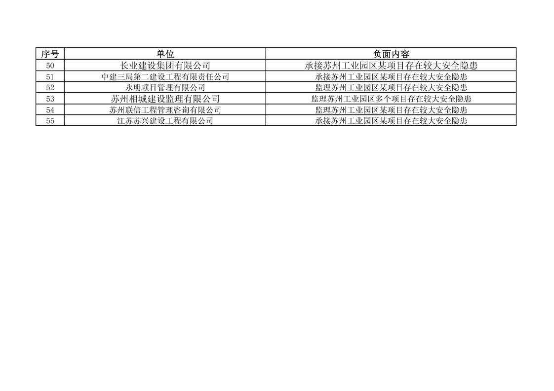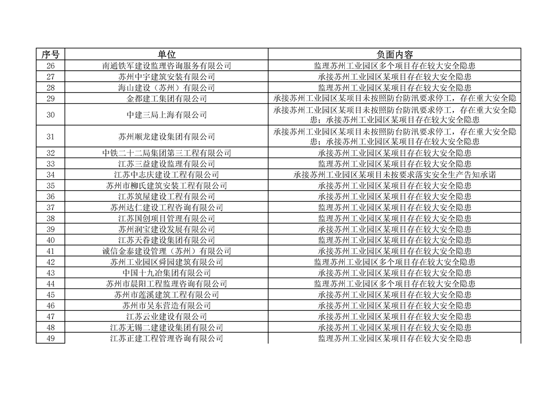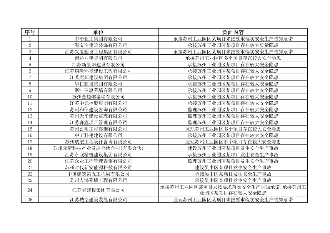蘇州工業園區建筑施工安全生產告知承諾負面清單