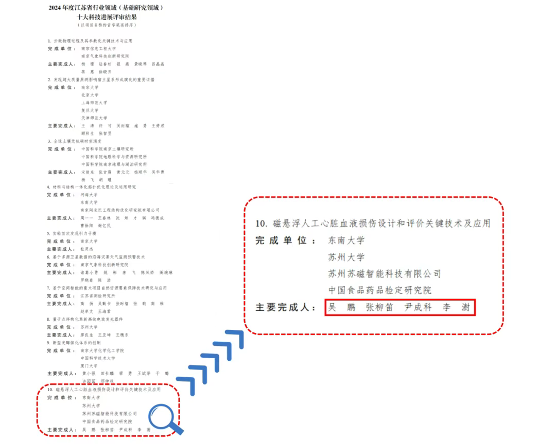 “磁懸浮人工心臟血液損傷設(shè)計(jì)和評價關(guān)鍵技術(shù)及應(yīng)用”項(xiàng)目由東南大學(xué)、蘇州大學(xué)、蘇磁科技與中國食品藥品檢定研究院聯(lián)合攻關(guān),解決了人工心臟血液損傷難以量化評估的技術(shù)瓶頸,體現(xiàn)了我國在高端醫(yī)療裝備核心技術(shù)領(lǐng)域的自主創(chuàng)新實(shí)力,充分彰顯了產(chǎn)學(xué)研協(xié)同創(chuàng)新的成效。