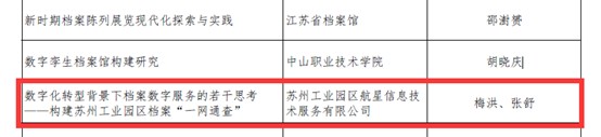 近日,2023 年全國(guó)青年檔案工作者學(xué)術(shù)論壇征文評(píng)選結(jié)果發(fā)布,蘇州市 8 篇論文獲獎(jiǎng)。其中,園區(qū) 2 篇論文分別獲評(píng)一等獎(jiǎng)和二等獎(jiǎng),占全市的1/4,居全市第一。