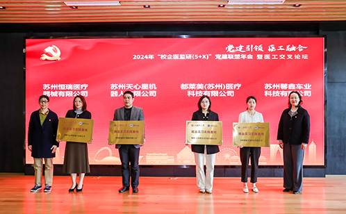 現場,一批就業實習基地授牌。上海理工大學健康科學與工程學院與蘇州恒瑞醫療器械有限公司、蘇州天心星機器人有限公司、都萊美醫療科技有限公司、蘇州馨鑫車業科技有限公司開啟校企實習實踐基地合作,打通學生就業“最后一公里”,為蘇州生物醫藥及大健康產業發展蓄力更多的創新人才。