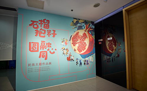 6月7日,“石榴抱籽 圓融同心”民族文化藝術作品展在蘇州獨墅湖城市藝術客廳開幕。