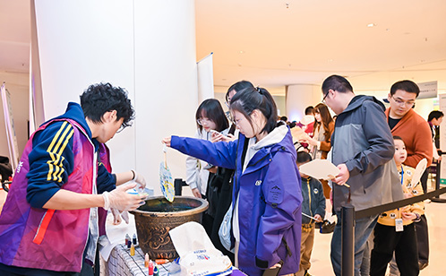 “漆扇”服務點人氣十足,排起了長隊。市民跟隨指引學習漆扇制作方法和技巧,挑選扇面及自己喜歡的顏色和圖案,以漆為筆、以水為墨,專心完成專屬自己的漆扇作品。