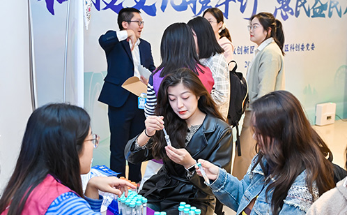 11月23日下午,蘇州獨墅湖科教創新區黨工委走進蘇州中心海棠服務站,開啟“科技文化攜手行,惠民益民萬家興”主題活動。現場設置了科學普及、產品展示、公益體檢、非遺推廣等10個服務點,為前來參與的市民準備了一場了“科技范”十足、“文化感”拉滿的體驗之旅。