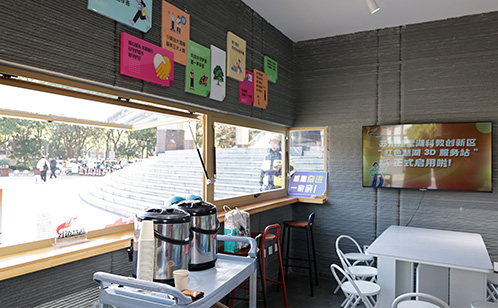 “紅色慧湖3D服務(wù)站”全程采用3D打印技術(shù)建造而成,將科技感融入建筑設(shè)計,集安全與環(huán)保于一體,鏈接蘇州獨墅湖科教創(chuàng)新區(qū)高校黨建聯(lián)盟、蘇州獨墅湖科教發(fā)展有限公司、蘇州工業(yè)園區(qū)公安分局永安橋派出所、蘇州工業(yè)園區(qū)斜塘街道林泉社區(qū)、文星廣場商戶等“近鄰”單位優(yōu)勢,通過共駐共建、互聯(lián)互動等方式,全方位多維度地建設(shè)“身邊的N種驛站”。