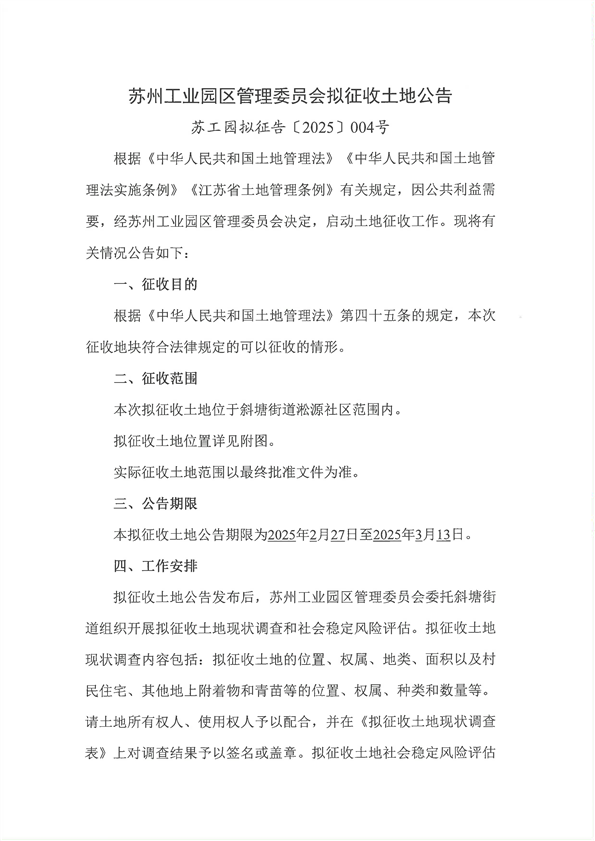 蘇工園擬征告〔2025〕004號--擬征收土地公告