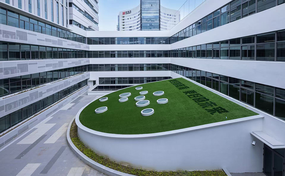 初見(jiàn)這所學(xué)校,簡(jiǎn)潔現(xiàn)代的外立面顯得與眾不同。教學(xué)樓外墻采用玻璃幕墻設(shè)計(jì),與周邊城市景觀達(dá)到融合統(tǒng)一。內(nèi)部通過(guò)合理的錯(cuò)層設(shè)計(jì)、中庭布置和開(kāi)窗布局,有效滿足采光與通風(fēng)的需求。