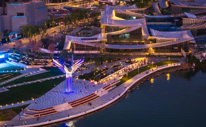 金鶏湖の右岸に、右岸客廳は正式に使用開始し、「飛翔」彫刻は除幕し、新規の人気スポットになり、「蘇州の眼」観覧車はキャビンを掛けることを完了し、園區の文化雰囲気と蕓術センスに新たなハイライトを添えた。