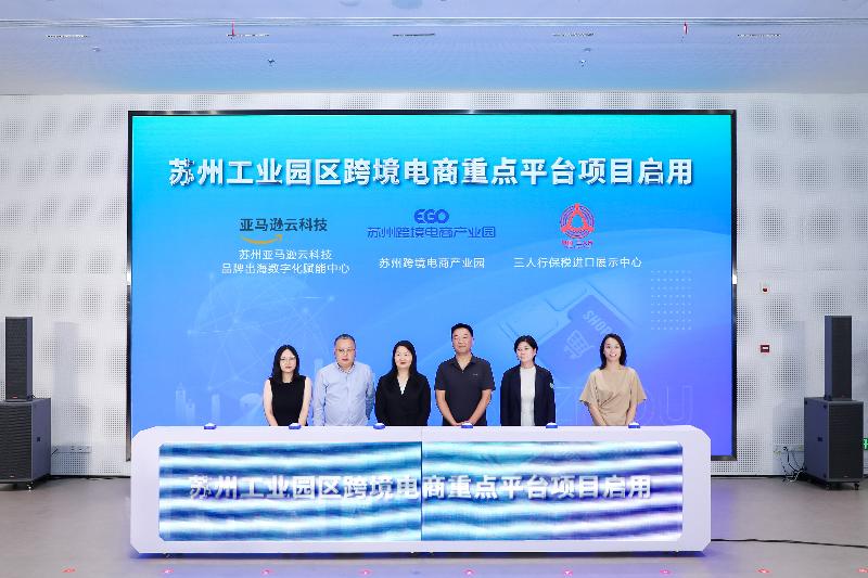 主辦方為園區(qū)跨境電商重點平臺項目蘇州亞馬遜雲(yún)科技品牌出海數(shù)碼化賦能中心、蘇州頤高跨境電商產(chǎn)業(yè)園、三人行保稅進口展示中心舉辦啟用儀式