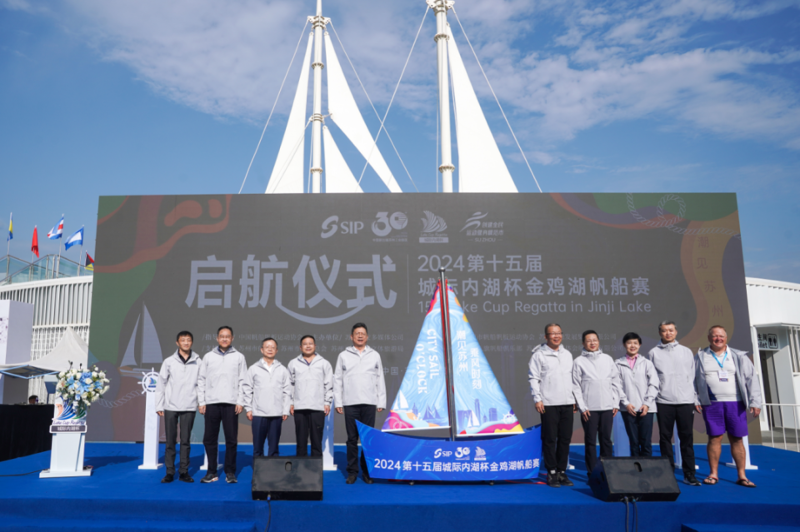 10月18日上午,第15屆城際內(nèi)湖杯金雞湖帆船賽啟動(dòng)儀式在蘇州工業(yè)園區(qū)望湖角帆船碼頭舉辦。