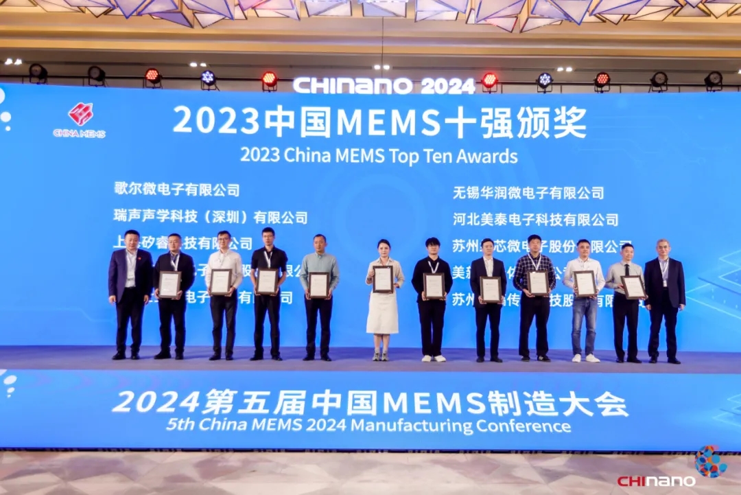 現(xiàn)場隆重舉行“2023年中國MEMS十強(qiáng)企業(yè)”頒獎儀式,其中蘇州納芯微電子股份有限公司、蘇州敏芯微電子技術(shù)股份有限公司、蘇州明皜傳感科技股份有限公司三家蘇州工業(yè)園區(qū)企業(yè)入選。