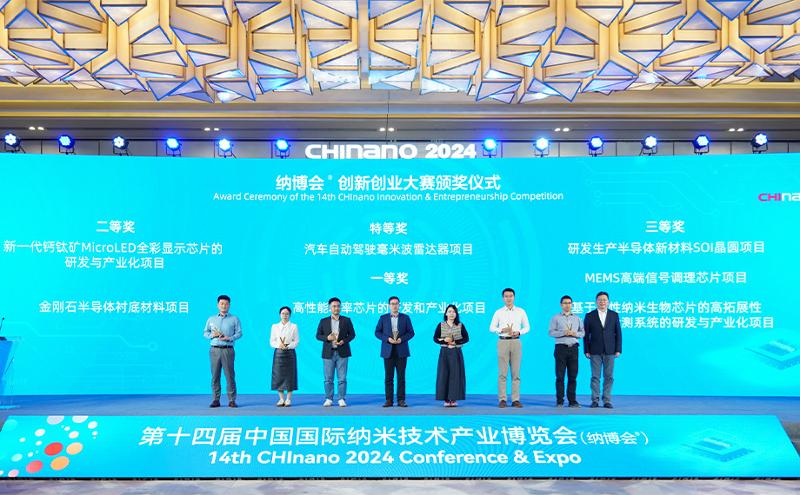 納博會創新創業大賽獲獎項目在現場進行頒獎。作為納博會的專業賽事,創新創業大賽始終聚焦納米技術前沿,集聚優質項目資源,吸引了來自全國范圍的眾多優質項目和創業精英,圍繞微納制造、先進電子器件和新材料等領域的應用成果展開激烈角逐。獲獎項目不僅代表了納米科技領域的最新成果,更是未來科技發展的風向標。