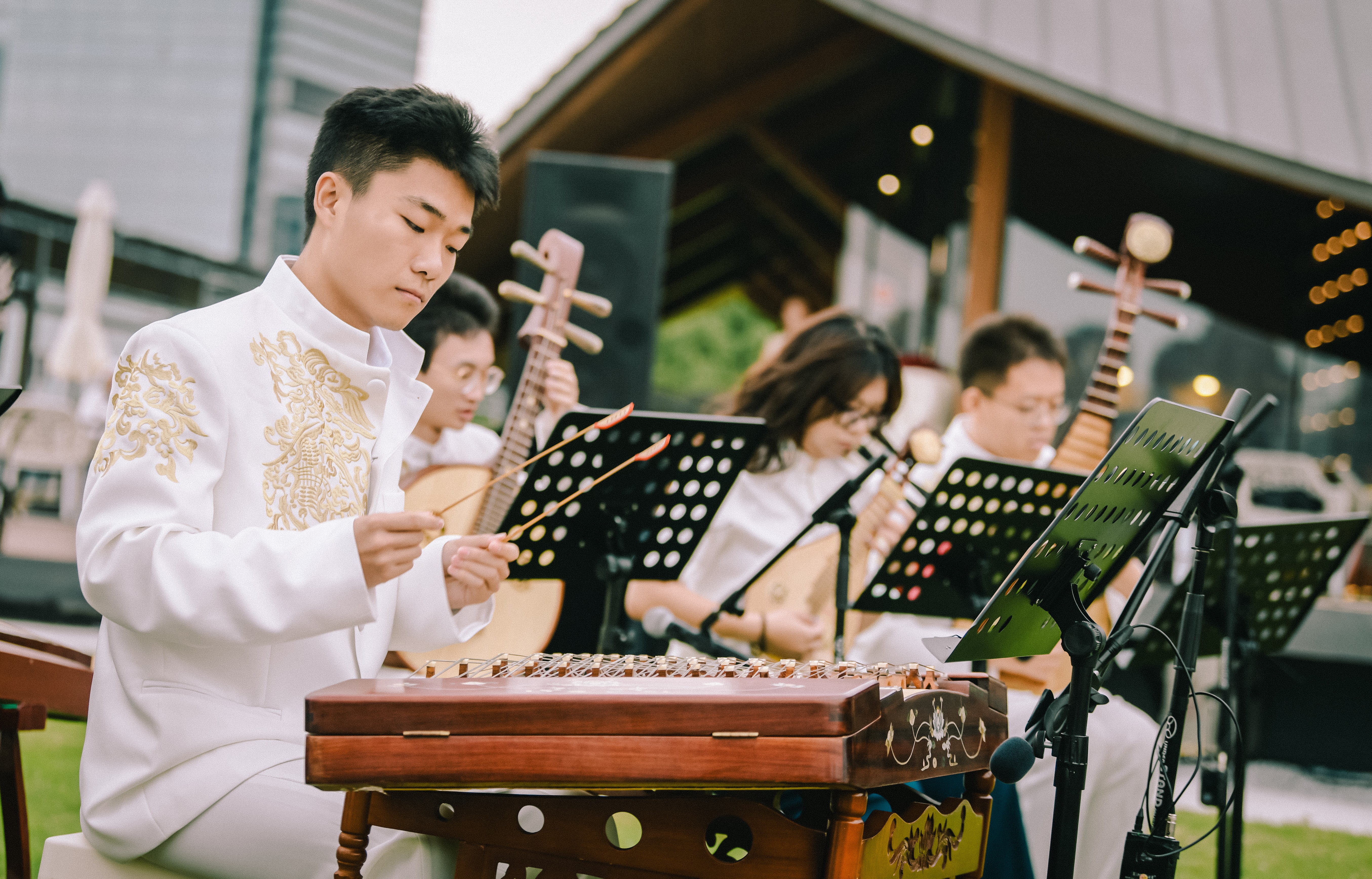 活動特邀園區(qū)高校藝術合唱團、織音民樂團精彩演繹,為金雞湖帶來一場視聽雙重享受的文化大餐,吸引不少湖畔游客駐足觀看。
