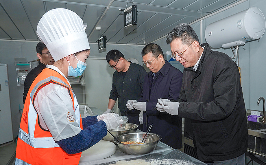 隨后,吳宏與在崗職工邊包餃子,邊拉家常,細致詢問留蘇生活需求。“一起坐下來嘗一嘗剛包的餃子!”大家歡聚一堂、暢所欲言,現場熱情高漲、其樂融融,洋溢著濃濃的節日氛圍。他說,各位犧牲小家、成就大家,寒冬臘月,注意身體健康、合理安排作息,科學統籌好工程進度,落實好安全生產各項措施,確保作業安全。