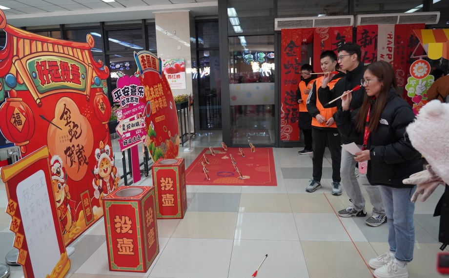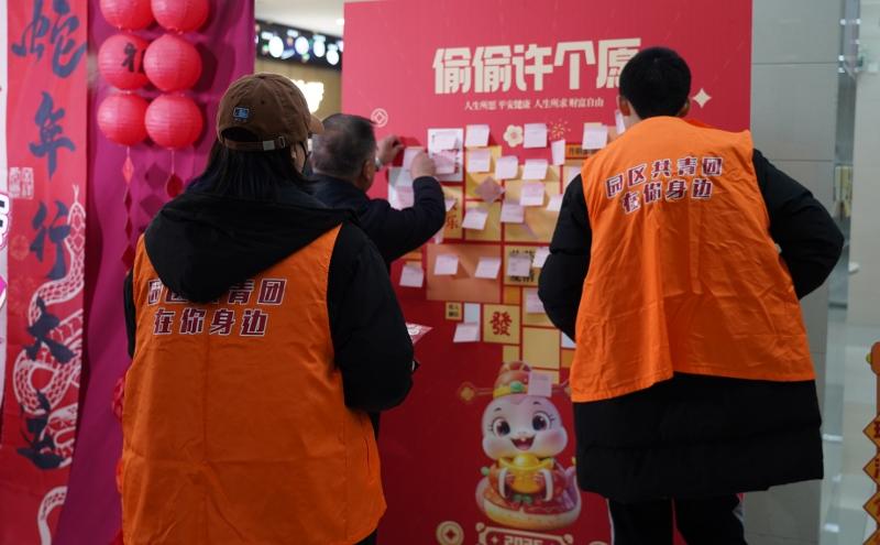 活動現場,團工委還為留蘇青年們準備了豐富多彩的暖心市集,現場歡聲笑語不斷。糖葫蘆、海棠糕、赤豆圓子……各類蘇式美食香氣四溢,投壺、套圈傳統游戲則吸引了眾多青年參與。在文化體驗區,青年們在非遺老師的指導下,親手拓印新春“福”字,學習傳統技藝,感受江南文化的獨特魅力;新年祈福墻前,大家紛紛拿起筆,在許愿牌上寫下對新一年的美好期許;而新春全家福區域則為青年們定格下了這難得的團聚時刻,留下珍貴的回憶。員工舒女士表示:“這次活動很熱鬧、很暖心,雖然沒有回家,但在蘇州也能過一個有溫度、有年味的春節。”