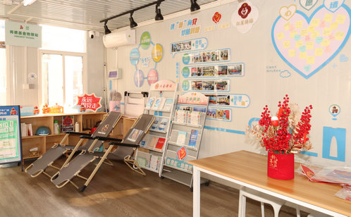 聯(lián)豐廣場(chǎng)的紅星驛站被裝點(diǎn)得年味十足,喜慶的春聯(lián)張貼在驛站門口,室內(nèi)玻璃上貼滿了寓意吉祥的窗花,紅紅火火的氛圍撲面而來。休息時(shí)段,不少新市民勞動(dòng)者、新業(yè)態(tài)從業(yè)者陸續(xù)走進(jìn)紅星驛站,大家圍坐在一起,聊聊天、拉拉家常,分享著生活中的酸甜苦辣。雖然他們中的許多人因工作原因無法回家過年,但在這里,彼此間的關(guān)懷與祝福讓他們仿佛找到了家的感覺。24小時(shí)永遠(yuǎn)亮著燈的紅星驛站,不僅為他們提供了一個(gè)休憩的場(chǎng)所,更用行動(dòng)告訴他們:即使身在異鄉(xiāng),也愿你感受到家的溫暖與幸福。一杯熱茶、一份禮包、一盞永遠(yuǎn)為你而亮的燈,不僅是對(duì)新就業(yè)群體的關(guān)愛,更是對(duì)每一位堅(jiān)守崗位的勞動(dòng)者的致敬。
