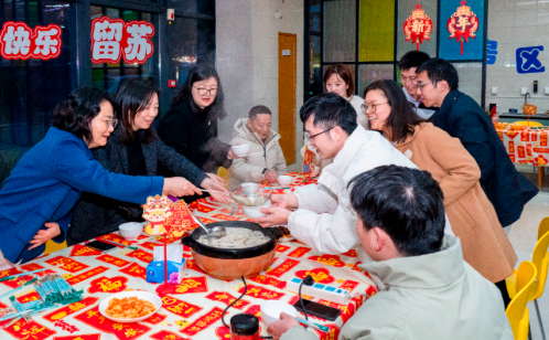 “蛇年大吉,祝大家家庭和睦溫馨,事業興旺發達,心想事成、平安喜樂。”大家一邊包餃子,一邊嘮著家常,分享這一年來的工作經歷,暢談對未來的期望,互道新春的祝福。一句句平實卻飽含真情的問候,醞釀在一盤盤熱氣騰騰的餃子中,帶著溫度傳遞到留蘇青年的心坎上。蘇州華星光電技術有限公司留蘇青年馮浙徽表示:“這是我第一次沒回家過年,這頓年夜飯很溫暖,讓我們這些在異鄉打拼的人在這里也能感受到家的味道。”