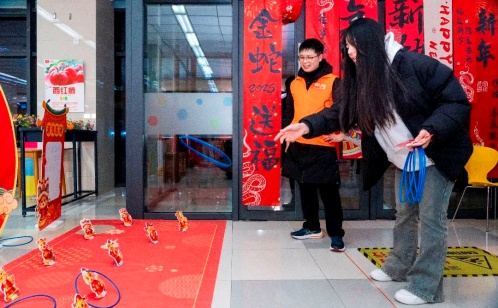 為讓廣大留蘇青年進一步感受傳統年味,享受歡樂時光,此次活動還開設新春市集。軟糯香甜的蘇式海棠糕、栩栩如生的非遺糖畫、甜甜蜜蜜的桂花糖藕、糯嘰嘰的赤豆小圓子,在美食區中擺放著各式各樣、香氣撲鼻的蘇式美食,這一刻,最地道的“酥”式年味在舌尖迸發,留蘇青年們在一口口美食中共同感受蘇式生活的精致美好。“新年上上簽”“蛇來運轉”等趣味十足的民俗游戲里,留蘇青年們盡情體驗,在互動中拉近距離,在歡聲笑語中感受“家門口”的別樣年味。留蘇青年們親手體驗非遺“福”字拓印、寫“福”送“福”,把滿滿幸福帶回家。豐富多彩的民俗手作體驗,讓大家更加深入地了解非遺的魅力,在“年味”里感受非遺之美。