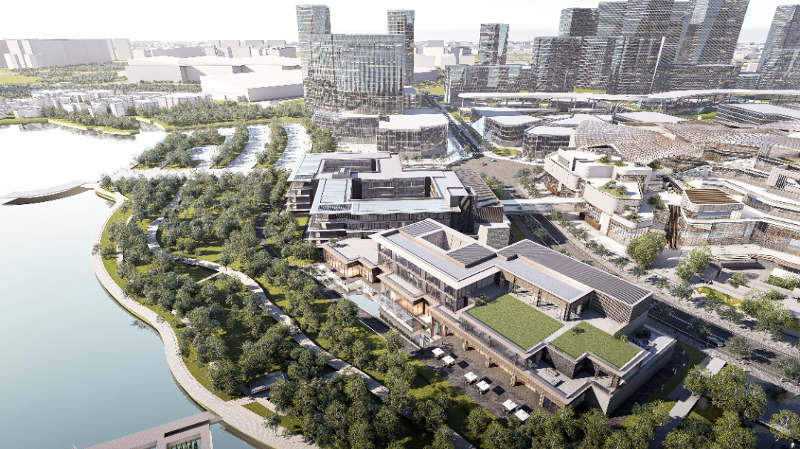 作為園區加快構建“一主兩副”城市發展新格局的重要組成部分,金雞湖右岸整體分為北區、中區、南區三個部分,中區是金雞湖右岸區域項目的重中之重。目前正加快蘇州中環、蘇州文華東方酒店、蘇州當代美術館、“蘇州之眼”摩天輪以及右岸客廳“4+1”重點項目建設,全力打造金雞湖畔文化商業新核心,各項目施工正有力有序推進中。