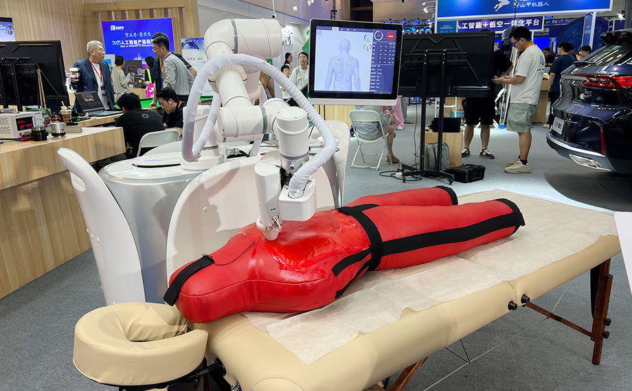 安韋澤是新加坡科技研究局的首個海外分支機構(gòu)——新科研引入園區(qū)的一家科技企業(yè),此次展會帶來按摩機器人EMMA,將千年中醫(yī)經(jīng)絡(luò)理論與前沿機器人技術(shù)相融合,重新書寫“推拿”技藝的時代傳承。安韋澤項目工程師陳雪介紹,企業(yè)在園區(qū)落地了研發(fā)和生產(chǎn),相關(guān)產(chǎn)品在中醫(yī)診所、康復(fù)機構(gòu)已有應(yīng)用,目前正申請國家醫(yī)療器械注冊流程,未來將讓優(yōu)質(zhì)康復(fù)資源惠及更多人群。