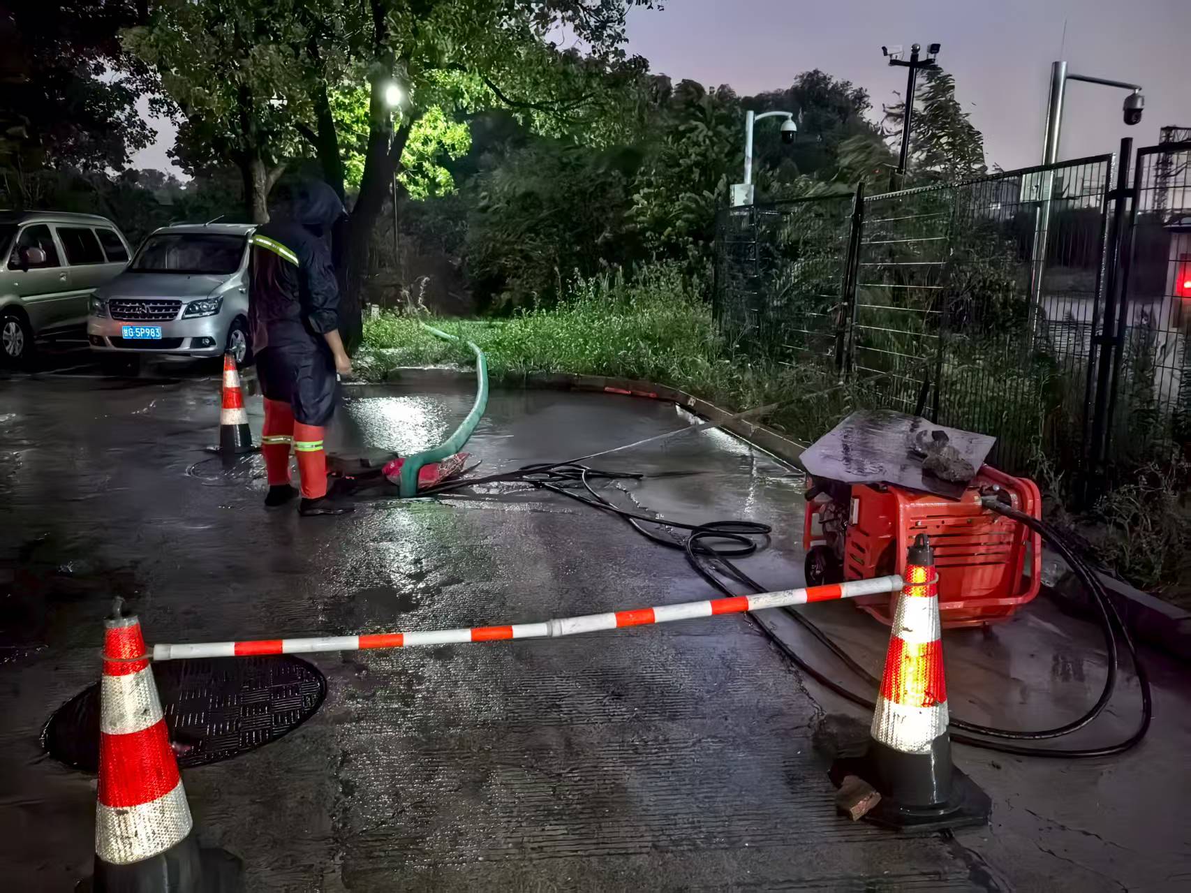 在金雞湖街道貴都社區,社區工作人員針對二期車庫這一重點,聯合物業提前部署,精準施策,在車庫入口處,配備大功率抽水泵,以便及時排除可能的積水威脅,為業主的財產安全撐起“保護傘”。其他各社區也整合物業、志愿者等多方力量,聚焦地下車庫、雨污水井、排水管網等關鍵部位,加強排查、疏通和清理,確保雨情第一時間響應、險情第一時間處置。