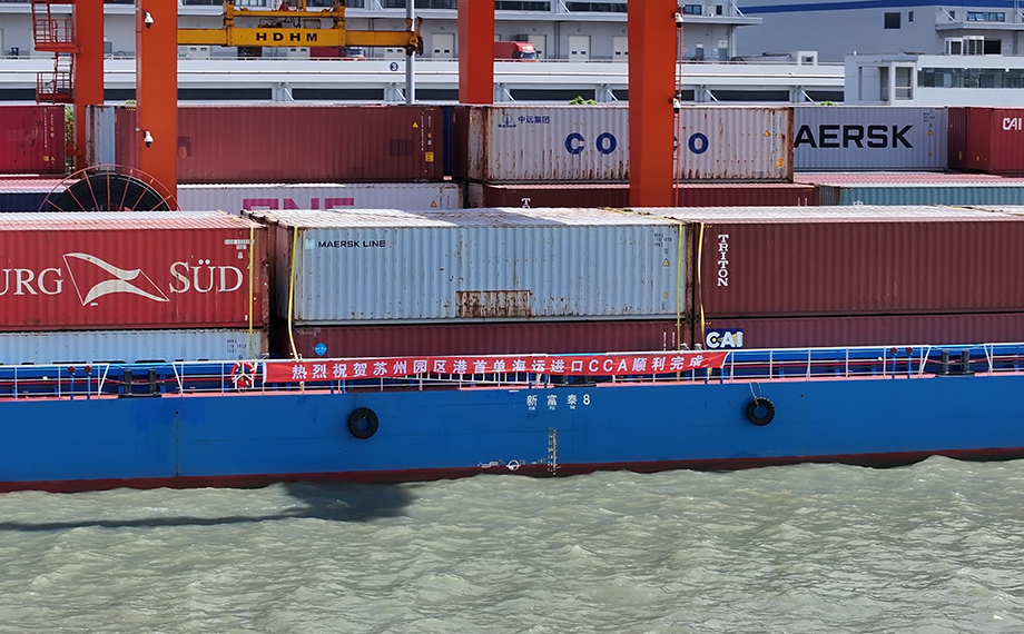 蘇州園區(qū)港依托“蘇州園區(qū)港海關監(jiān)管作業(yè)場所”,創(chuàng)新推行“一單制”通關模式,實現(xiàn)“一次委托、一次結算、一次放行”,通關效率提升50%以上。首票外貿CCA進口業(yè)務的落地,背后是園區(qū)海關、園區(qū)港、貨代企業(yè)等多方的密切協(xié)作和精心組織,打破了園區(qū)港只有外貿出口沒有外貿進口的局面,內河駁船能夠重重運輸,實現(xiàn)外貿進出口雙向對流,進一步降低海運集裝箱單箱物流成本。此外,進口重箱拆箱后可直接在園區(qū)港還空箱,緩解出口企業(yè)用箱難、箱源少等痛點問題。