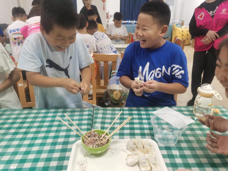 “‘小候鳥’們平時和父母的溝通交流不多,我們特意安排了系列實踐課程,比如自制花籃、包蘇式小餛飩等,讓‘小候鳥’在沉浸式體驗傳統文化魅力的同時可以將親手制作的禮物送給父母,增加親子間的交流。”街道團工委負責人介紹,點位按1:5比例配備志愿者,全程陪伴孩子們的暑期時光,確保“小候鳥”在暑托服務期間的看護及安全問題。