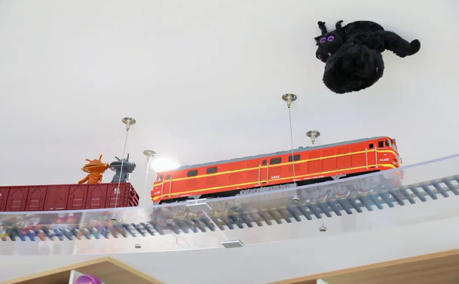 蘇玩博本次的升級,不僅將原本的二樓打造為被藏品填滿的藝術(shù)空間,還對一樓進(jìn)行了特別改造。踏入博物館那一刻記得抬頭看:嘟嘟!“天花板火車”發(fā)車?yán)玻胺降秸荆宏柍魏雿u站。火車沿路還將偶遇眾多小動(dòng)物。