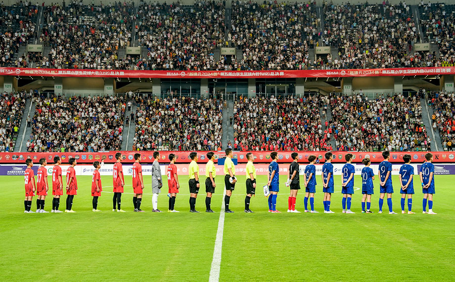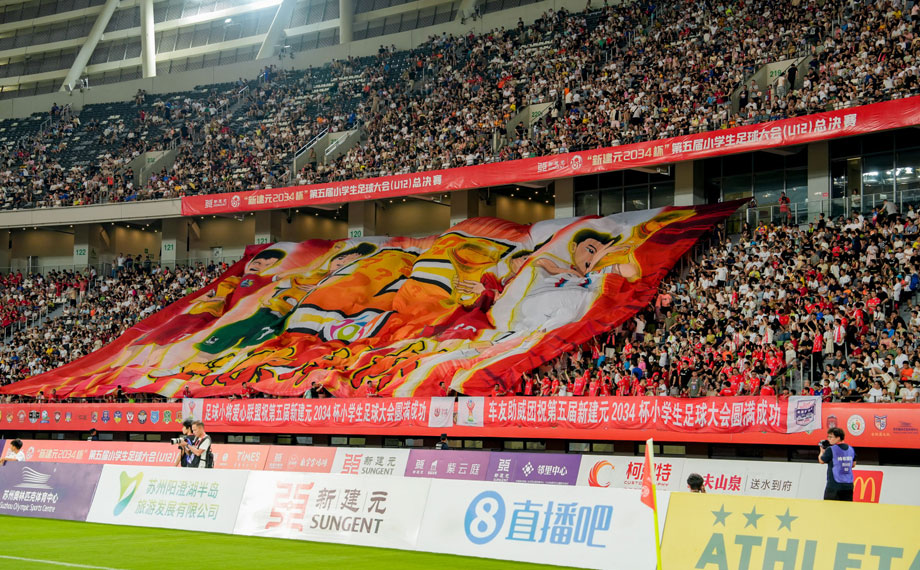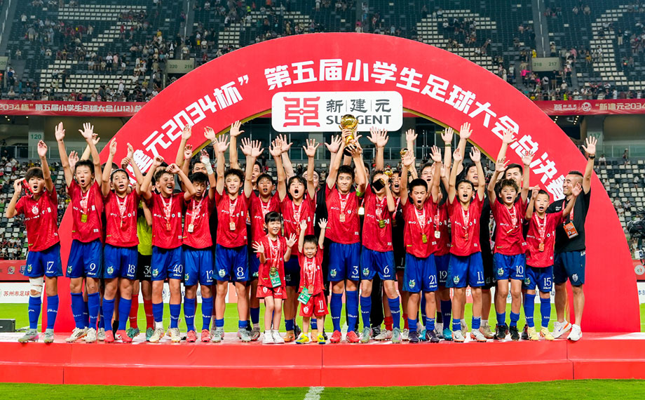 “新建元2034杯”小學生足球大會(U12)是U12年齡段全國最高規格、最具觀賞水平、最具關注度的青少年足球賽事之一。本屆比賽由江蘇省足球運動協會指導,蘇州工業園區文體旅游局、蘇州市足球協會主辦,蘇州奧體中心管理有限公司、蘇州陽澄湖半島旅游發展有限公司、二零三四杯體育發展(蘇州)有限公司協辦,新建元集團冠名支持。總決賽期間,來自全國各地的120支球隊2000余名運動員匯聚蘇州,歷經8天鏖戰,在園區奧體中心、陽澄湖半島足球公園、市足協活動中心、文緣體育場貢獻了416場精彩比賽,以專業競技水準激發社會對青少年體育的關注,為中國足球的崛起播下希望的種子。最終,北京夢之隊與中國足球小將兩支隊在頂峰相遇。