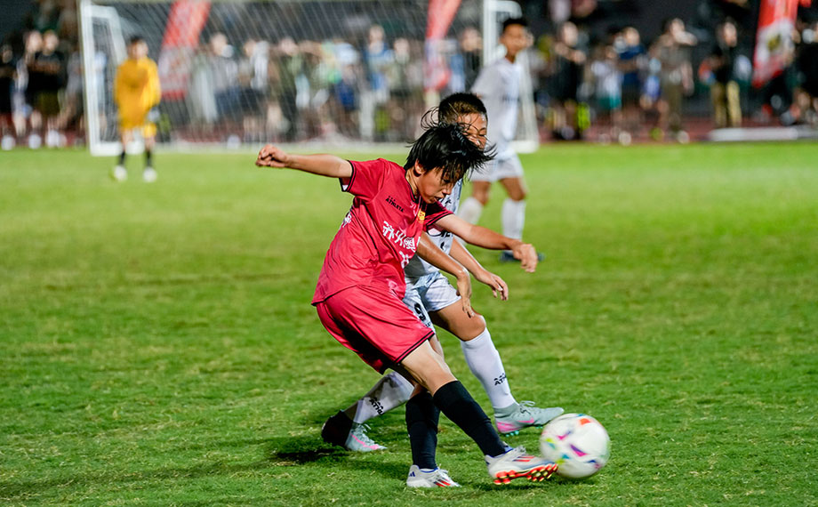 當天19:30,冠亞軍爭奪戰正式打響。綠茵場上,雙方隊員火力全開。帶球過人、中途截斷、伺機射門、果斷撲救……他們用積極拼搶、默契配合詮釋拼搏,展現出新生代小球員極高的競技水平和團隊精神,贏得了現場觀眾陣陣歡呼。