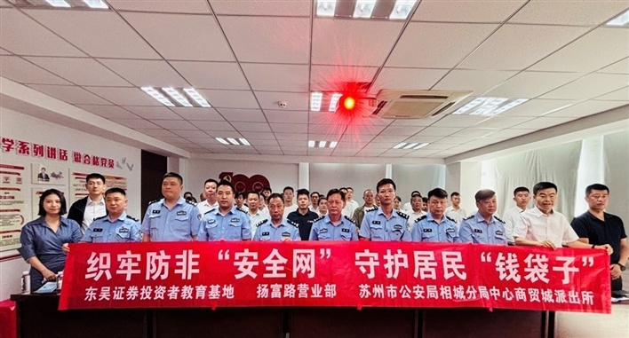 為深入貫徹落實國家關于防范金融風險的工作部署,全方位加強金融風險防范宣傳教育,切實提高人民群眾的風險識別能力和防范意識,保護投資者合法權益,近日,在東吳證券投資者教育基地的指導下,東吳證券蘇州工業園區揚富路證券營業部聯合相城中心商貿城派出所共同開展了以“織網防非‘安全網’守住居民‘錢袋子’”為主題的投資者教育特色宣傳活動。本次活動吸引了轄區居民、社區工作者及派出所民警等約50人參與,現場氣氛熱烈,互動積極。