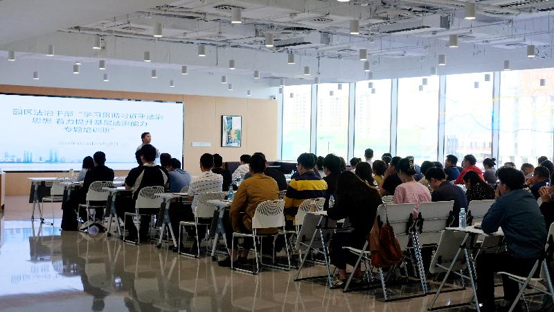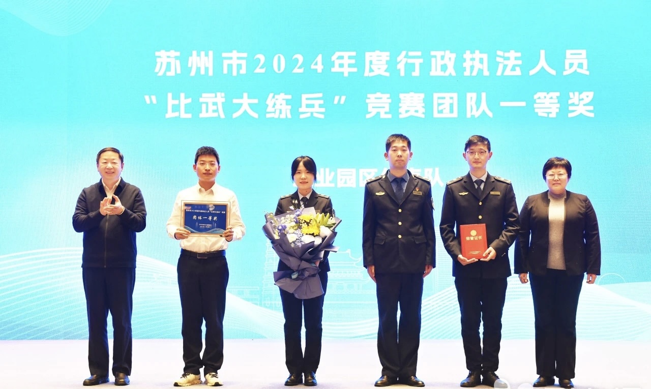三是以“訓”賦能,推進行政執法隊伍專業化。協同并進,線上組織覆蓋全區1163名行政執法人員的年度輪訓,線下舉辦“學習貫徹習近平法治思想?著力提升基層法治能力專題培訓班”,邀請條線專家、資深法官、高校教授等現場授課,累計培訓法治干部150余人次。2024年,園區各行政執法單位組織業務理論知識、執法技能實務、法律法規規章等培訓600余次,培訓執法人員及輔助人員8000余人次,促進行政執法隊伍專業能力整體提升。在蘇州市組織的2024年度行政執法人員“比武大練兵”競賽中,園區代表隊榮獲團隊一等獎。