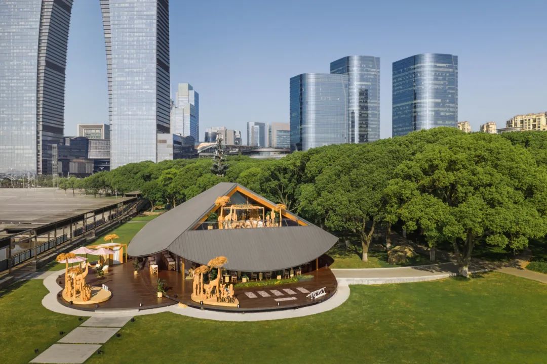 緊鄰東方之門與音樂噴泉,金雞驛01的原木色建筑與湖景、香樟綠意相映成趣。在這里,意大利illy咖啡Plus旗艦店帶來經典意式風味與蘇州特調飲品,“讀吧SIP”數字閱讀服務則讓休憩時光更添書香。日前,DIOR“尋光南法”限時快閃在此上演,草編動物園、茹伊印花坐席與湖光水色交織,將南法浪漫搬至江南,讓國際范兒觸手可及。作為文化交流的重要平臺,這里還曾舉辦中法建交60周年“詠愛”音樂詩朗誦活動,并有藝術展覽、戶外瑜伽、樂手駐唱等活動持續上演,讓東西方美學的碰撞在日常中延續,為都市休閑注入更多文化質感。