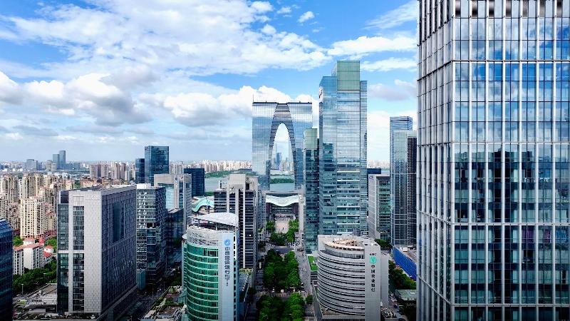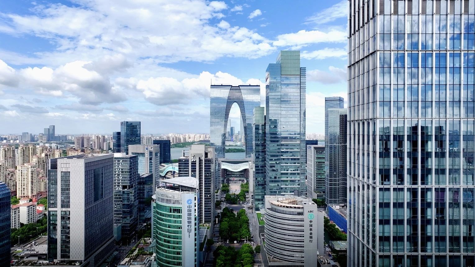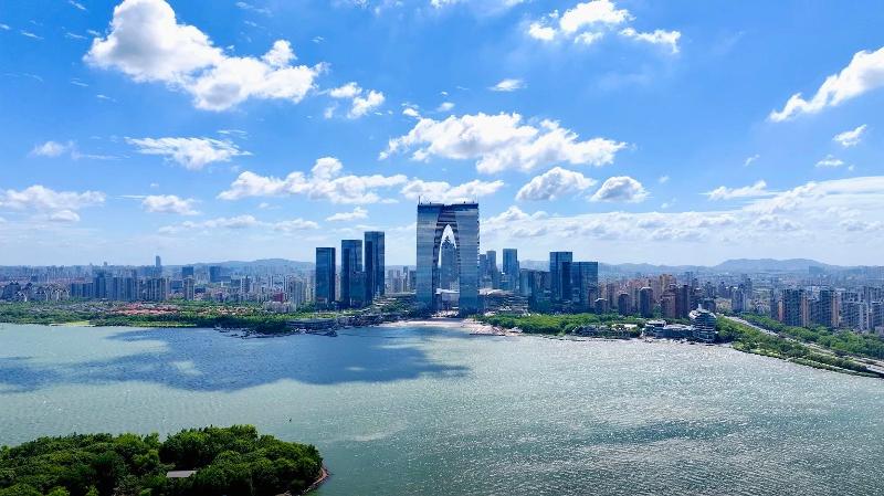 “蘇州之眼”摩天輪等地標(biāo)建筑引得游人駐足流連,摩天大樓的玻璃幕墻化作天空之鏡倒映著藍(lán)天白云,錯(cuò)落有致的現(xiàn)代建筑與自然風(fēng)光和諧相融。這片“澄凈藍(lán)”,不僅是大自然饋贈(zèng)的視覺(jué)盛宴,更是園區(qū)生態(tài)與發(fā)展相得益彰的生動(dòng)寫照。