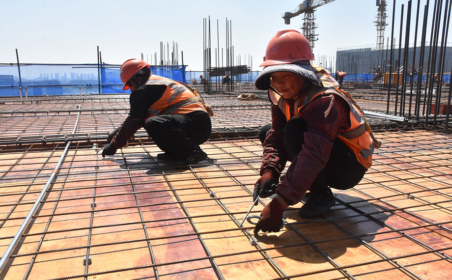 上午九點(diǎn),在生物醫(yī)藥國(guó)家技術(shù)創(chuàng)新中心研發(fā)樓7層的作業(yè)面上,鋼筋工張彩麗動(dòng)作嫻熟,一手勾住鋼筋,一手快速穿絲、綁扎、擰緊,汗水浸透了工裝。不遠(yuǎn)處,負(fù)責(zé)預(yù)埋安裝的徐生兵正一絲不茍地進(jìn)行著“排兵布陣”。“這些都是大項(xiàng)目,工程質(zhì)量必須保證。我在園區(qū)各項(xiàng)目工作了近四年,看著經(jīng)手的一個(gè)個(gè)項(xiàng)目建成、投用,即便辛苦,我也充滿自豪!”徐生兵說(shuō)道。