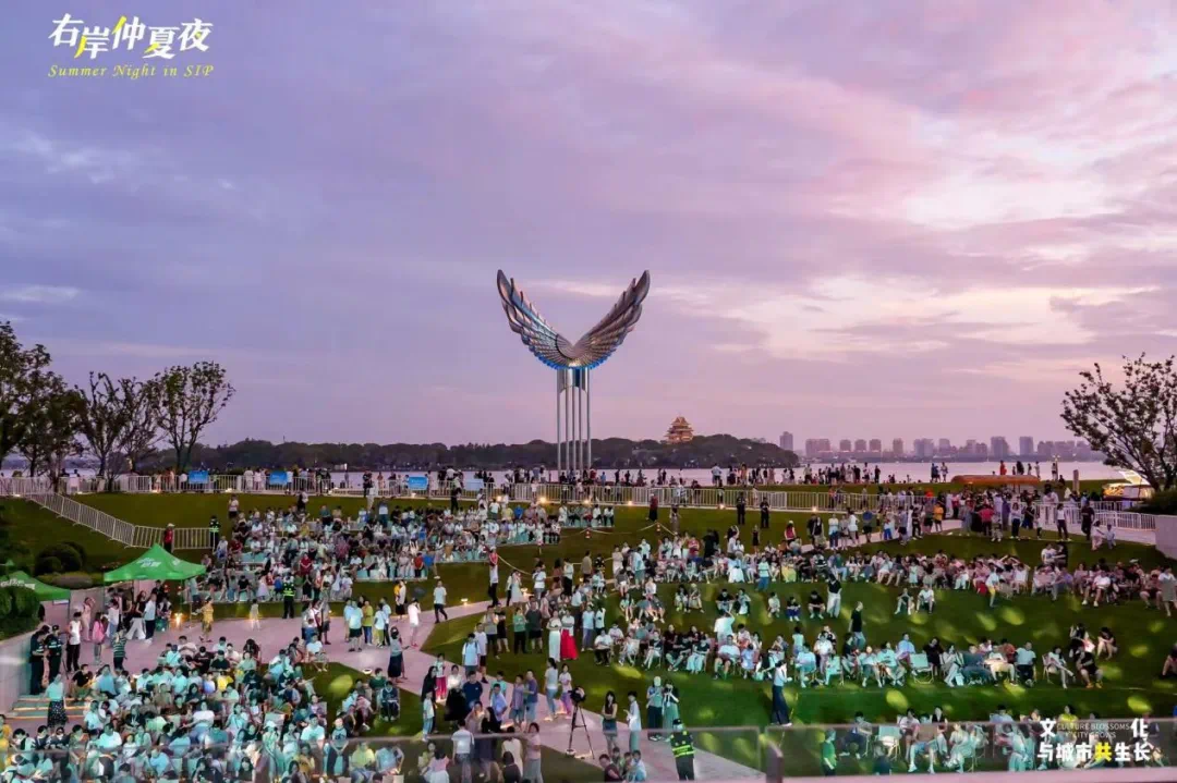 當(dāng)夕陽(yáng)的余暉為蘇州文化藝術(shù)中心的《入戲》雕塑鍍上一層溫暖的金色,“落日事集”便成了都市人最愛的精神棲息地。這個(gè)充滿年輕活力的藝文空間,每個(gè)晴天傍晚都會(huì)準(zhǔn)時(shí)開市,即興音樂(lè)演出、改裝車攤位、創(chuàng)意手作和露天電影輪番上演,讓金雞湖畔瞬間變身城市最放松的休閑勝地。