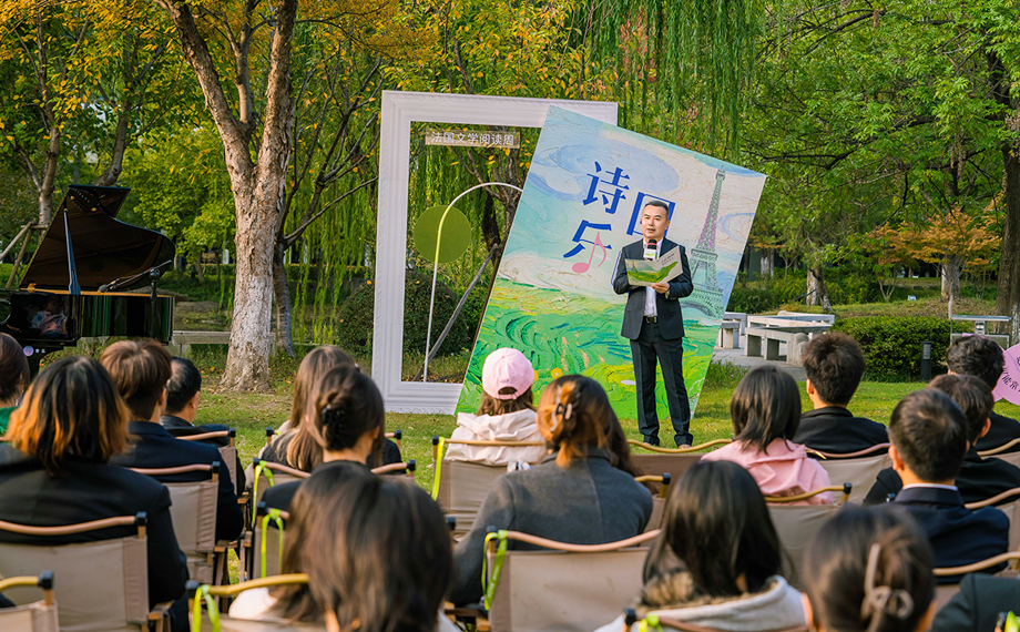 此外還有“詩(shī)樂(lè)回響”湖畔朗誦會(huì)在獨(dú)墅湖畔戶外草坪溫情上演。高校師生、文學(xué)愛(ài)好者齊聚于此,誦讀雨果、拉封丹等法國(guó)文豪的經(jīng)典篇章,搭配《浪漫曲》《梁祝》等中法名曲,鋼琴與圓號(hào)的旋律縈繞湖畔,讓文字與音符跨越語(yǔ)言壁壘,在波光粼粼的湖岸線旁,奏響中法藝術(shù)共鳴的動(dòng)人樂(lè)章。