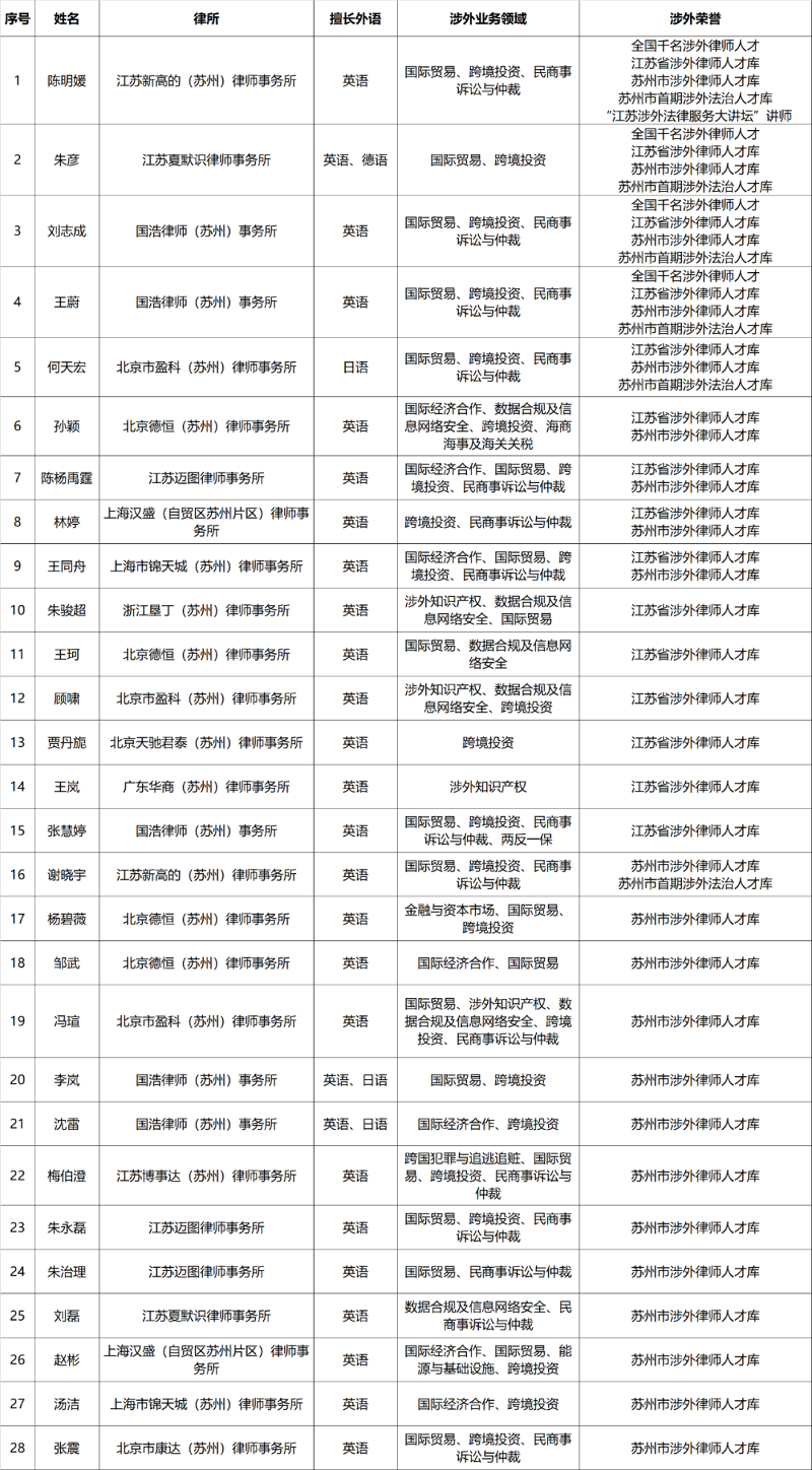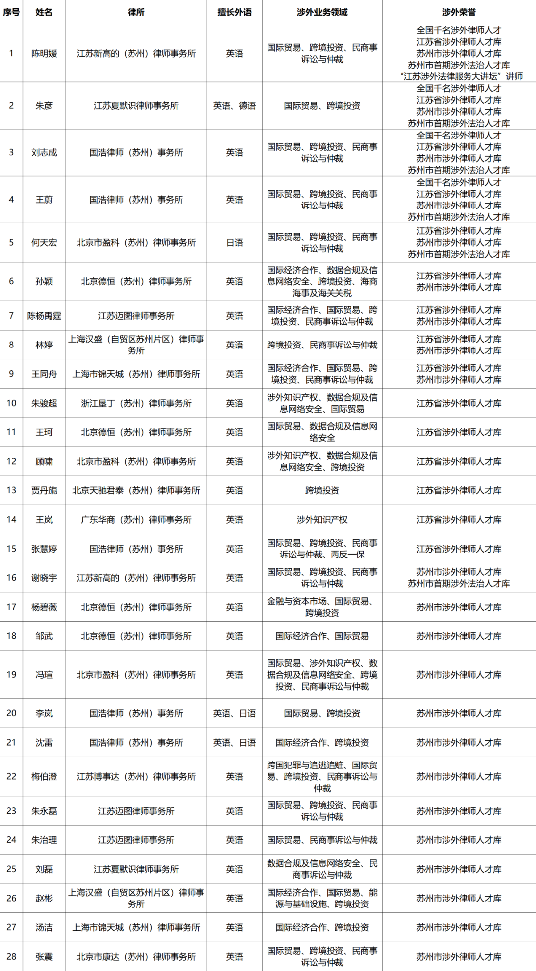 當(dāng)前,全球貿(mào)易格局正在深度重構(gòu),為幫助企業(yè)有針對性獲取涉外法律服務(wù),園區(qū)律協(xié)整理出入選全國、省、市涉外律師人才庫的園區(qū)律師,匯總成園區(qū)涉外律師人才庫,同時(shí)梳理相關(guān)涉外律師的擅長領(lǐng)域,推動實(shí)現(xiàn)企業(yè)涉外法律服務(wù)需求與服務(wù)供給的精準(zhǔn)匹配。如需相關(guān)律師聯(lián)系方式可咨詢園區(qū)律師協(xié)會(聯(lián)系電話:0512-66683773)。