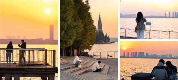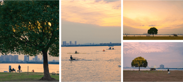 The Egrets Park is popular with sunsetlovers. It is common to see people holding up their mobile phones to record thesunsets through their lenses, or simply standing still and watching the lakeand the buildings on the other side of the lake.The sunlight turns soft at dusk, tenderlyfalling on the people as if it was trying to dissipate the fatigue for them. T... [MORE]