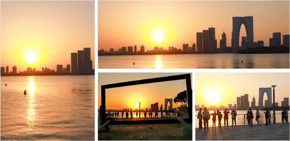 Suzhou Culture and Arts Centre is a goodplace to enjoy sweeping views of sunsets.People are part of the pictures ofsunsets when it is seen through the artistic sculpture “In The Play”, whichfeatures a rectangular frame held up by a pair of hands. At different moments, the setting suncreates different pictures which are fascinating in varied ways. Here is o... [MORE]