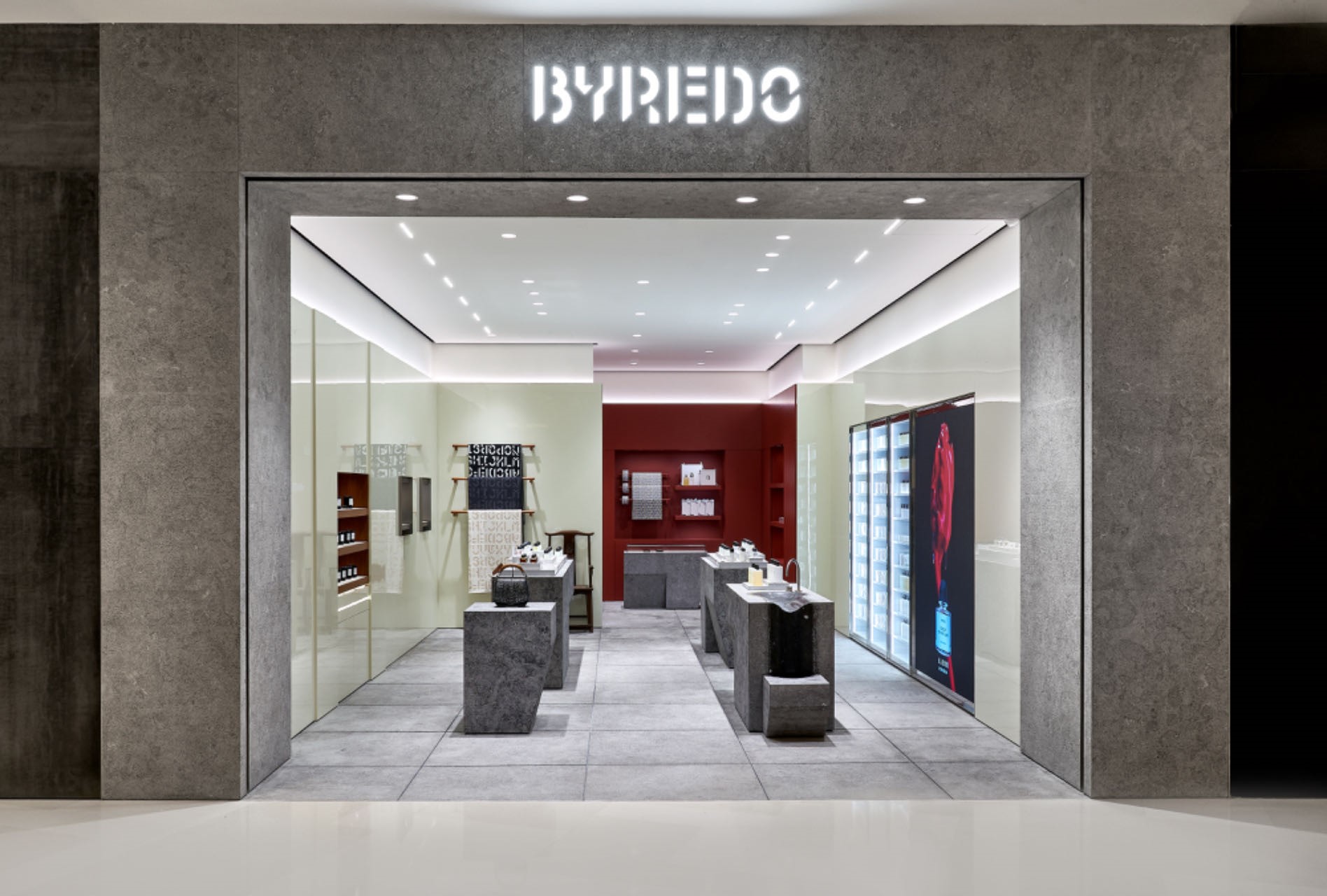 BYREDO opened its new boutique on the first floor in the north zone of the mall on July 9, starting a new chapter for the brand with natural materials, minimalist tones and precise spatial aesthetics. The boutique offers a selection of fragrances, home goods and other products within a serene architectural space rich in tactile textures.
