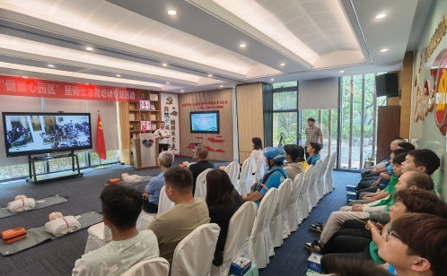 During the event, a professional lecturer demonstrated the CPR (cardio-pulmonary resuscitation) steps and the use of an AED (automated external defibrillator) to the participants, and emphasized the importance of performing CPR within the first four minutes of cardiac arrest.